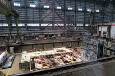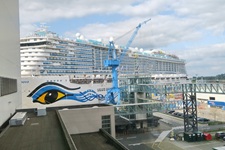 Auf dem Programm stand neben dem Gottesdienst in der Erlöser-Kirche und einem gemeinsamen Mittagessen natürlich auch ein Abstecher auf die Meyer-Werft. Da lag die gerade erst getaufe AIDAnova und wartete auf die Überführung auf der Ems in Richtung Emden.