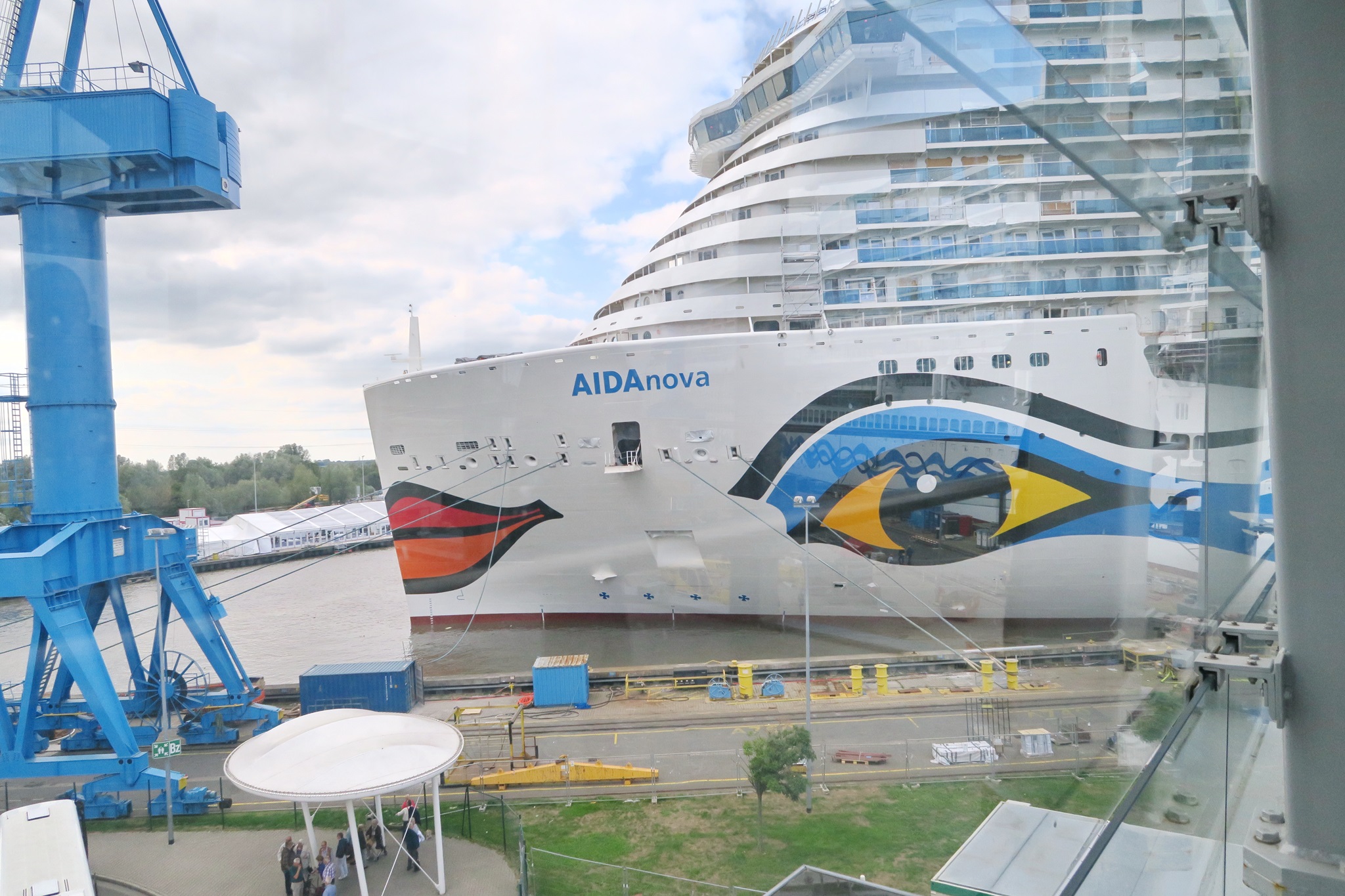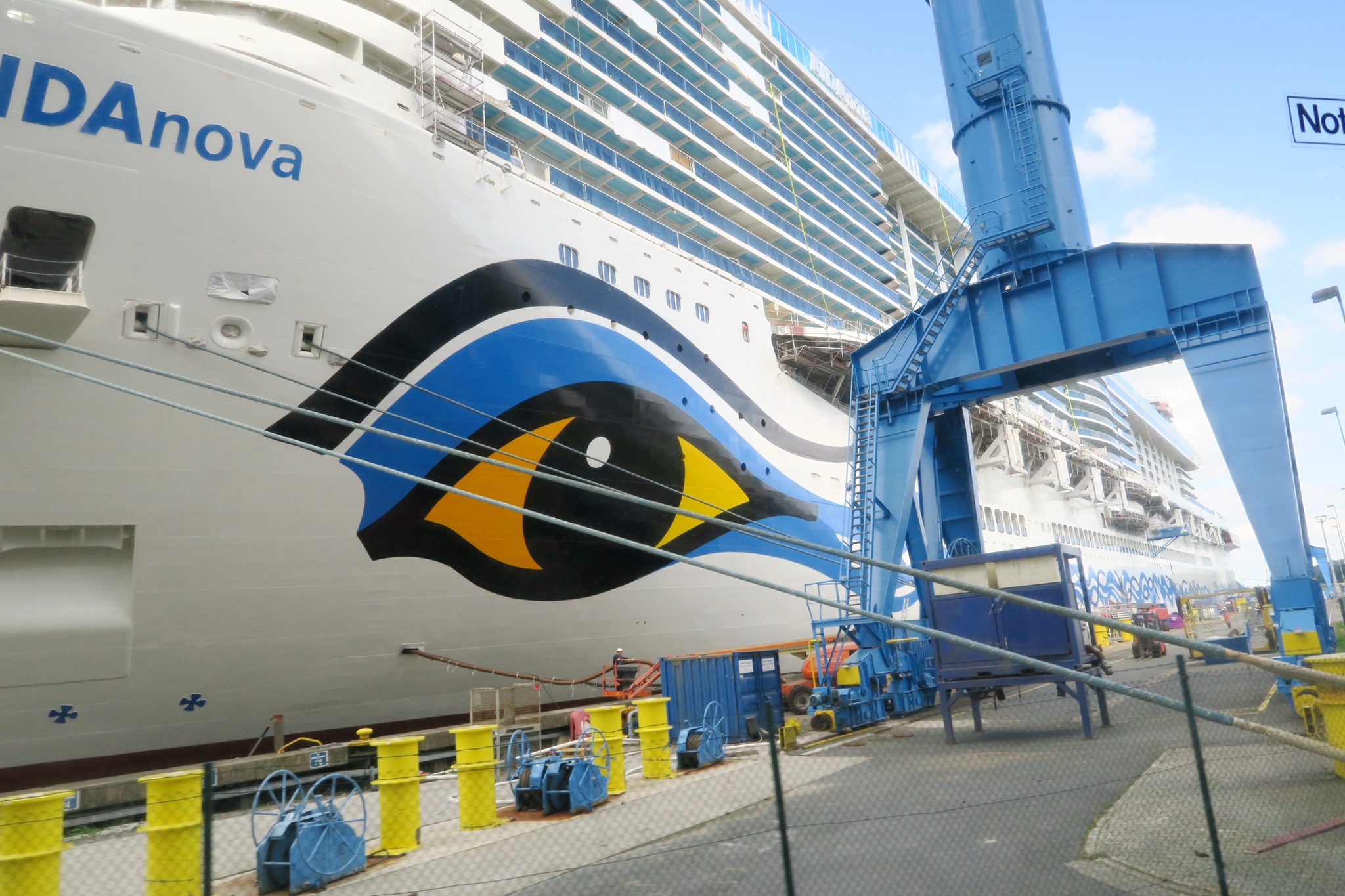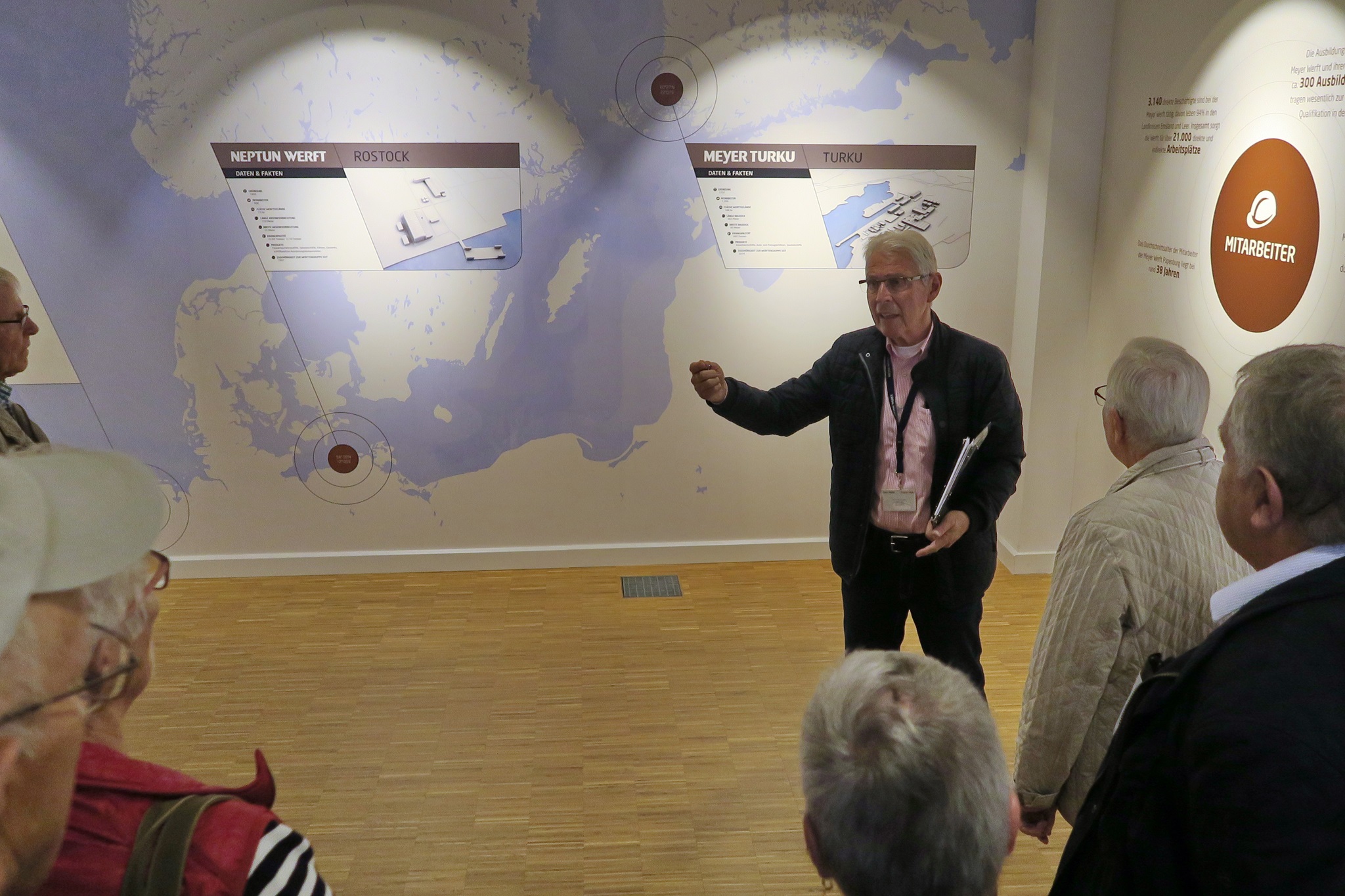 Auf dem Programm stand neben dem Gottesdienst in der Erlöser-Kirche und einem gemeinsamen Mittagessen natürlich auch ein Abstecher auf die Meyer-Werft. Da lag die gerade erst getaufe AIDAnova und wartete auf die Überführung auf der Ems in Richtung Emden.