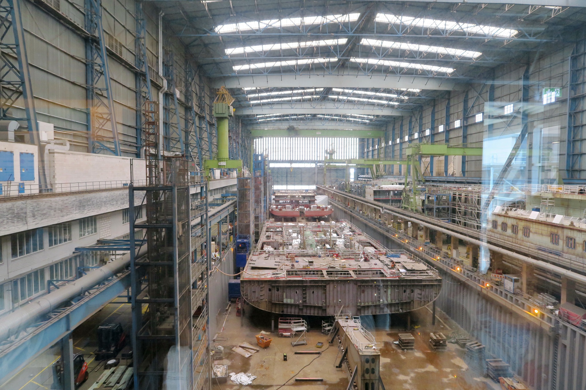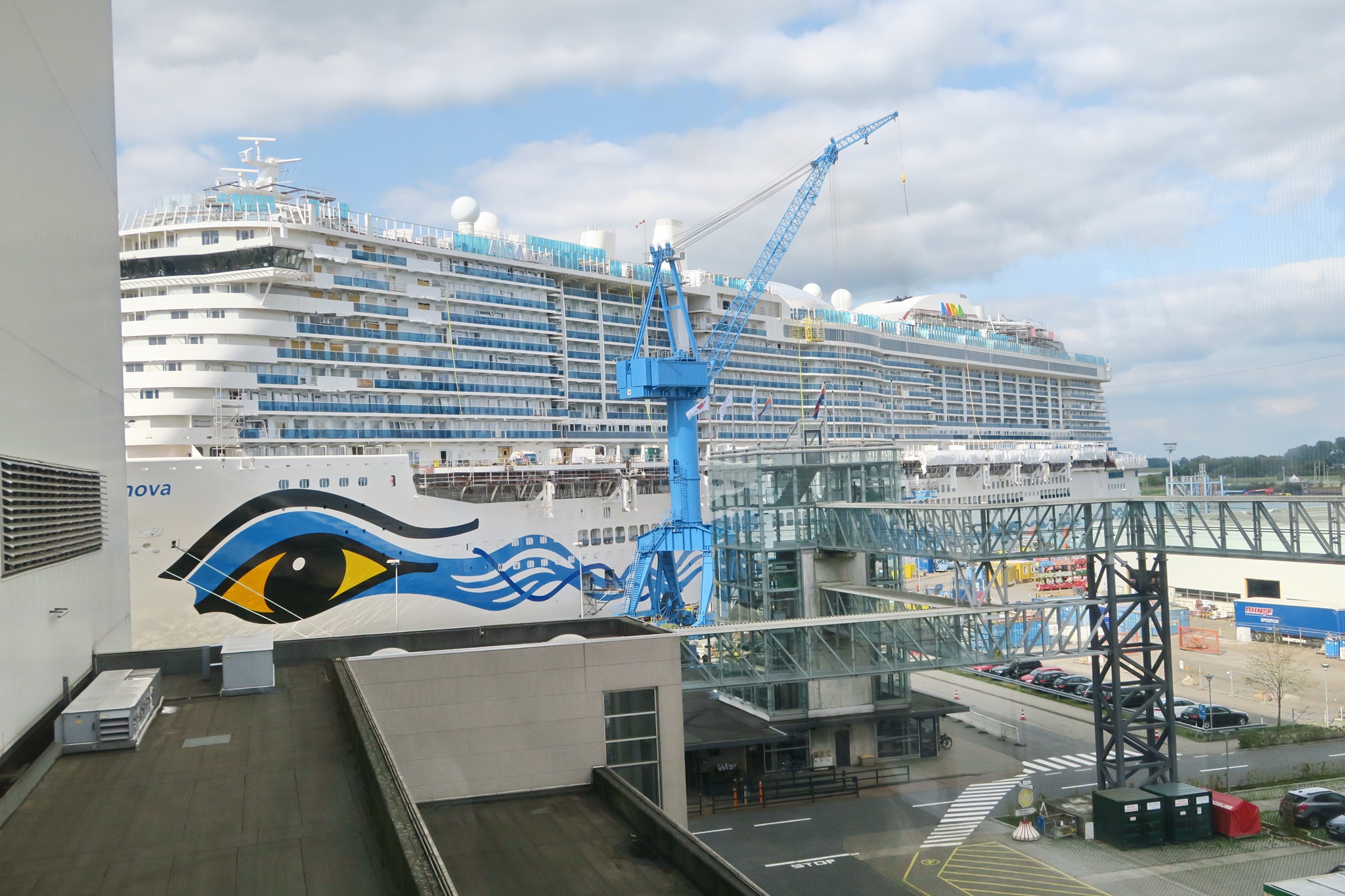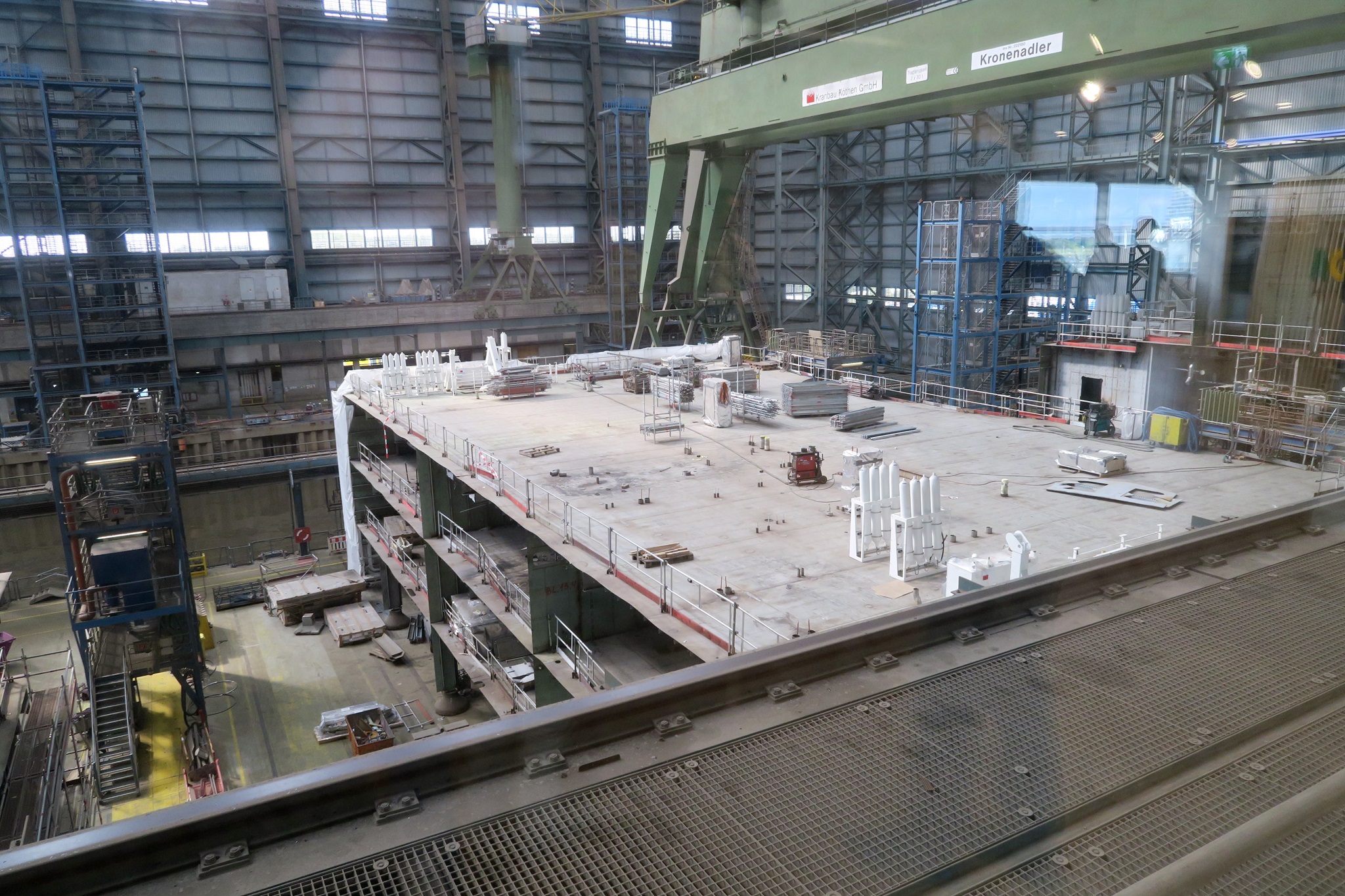 Auf dem Programm stand neben dem Gottesdienst in der Erlöser-Kirche und einem gemeinsamen Mittagessen natürlich auch ein Abstecher auf die Meyer-Werft. Da lag die gerade erst getaufe AIDAnova und wartete auf die Überführung auf der Ems in Richtung Emden.